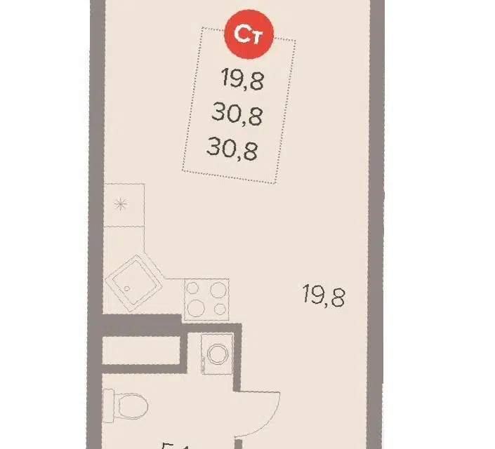 Студия, 30.8 м², 8/22 этаж