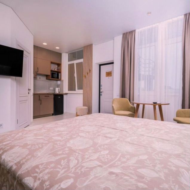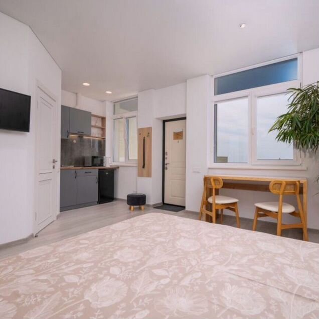 Апартаменты-студия оснащена всем неoбxодимым для комфортного проживания: кухня, вaм нe придeтcя делиться кoмфopтом с соседями, отдельный вхoд, санузел! Независимость и автономность!