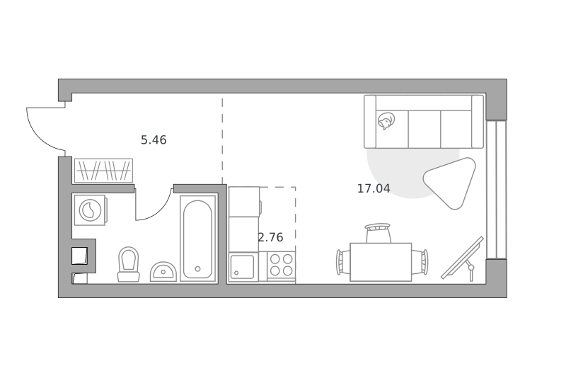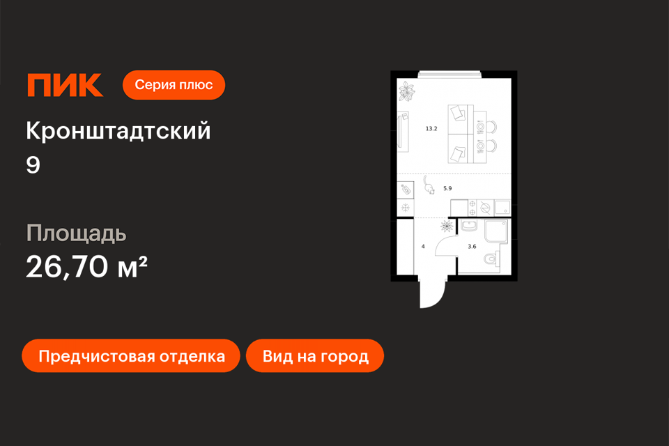 Студия, 27.5 м², 20/23 этаж