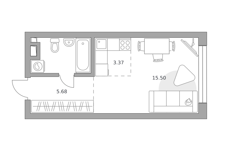 Студия, 11.8 м², 1/9 этаж