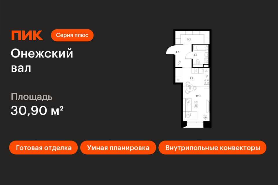 Студия, 30.9 м², 8/23 этаж
