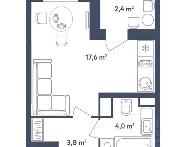 Студия, 24 м², 7/20 этаж
