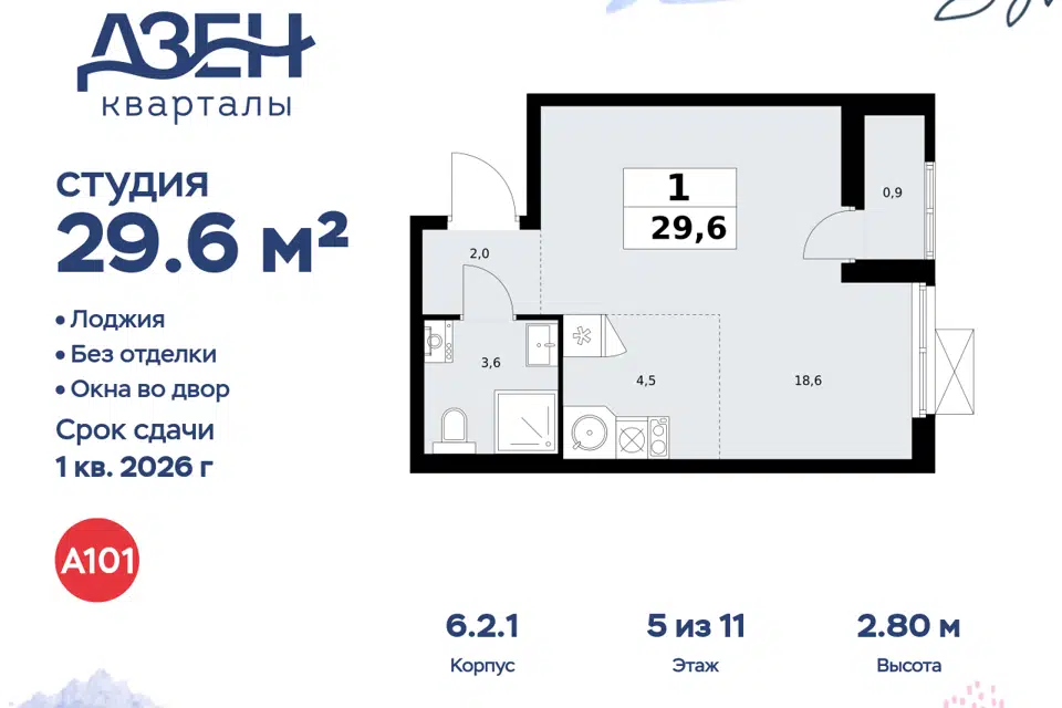Студия, 29.8 м², 4/18 этаж