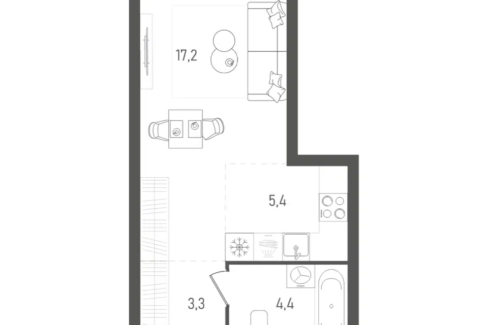 Студия, от 22 м², 5-27 этажи