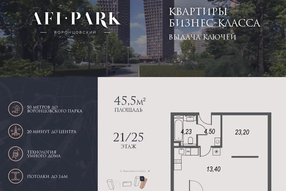 Студия, 45.5 м², 21/25 этаж