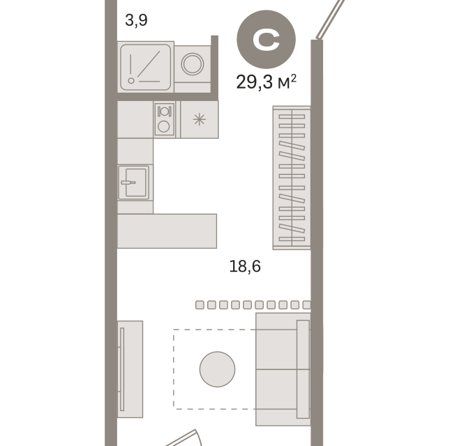 Студия, 29.3 м², 7/24 этаж