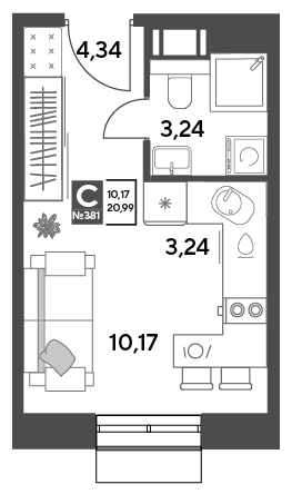 Студия, от 20.99 м², 11-15 этажи