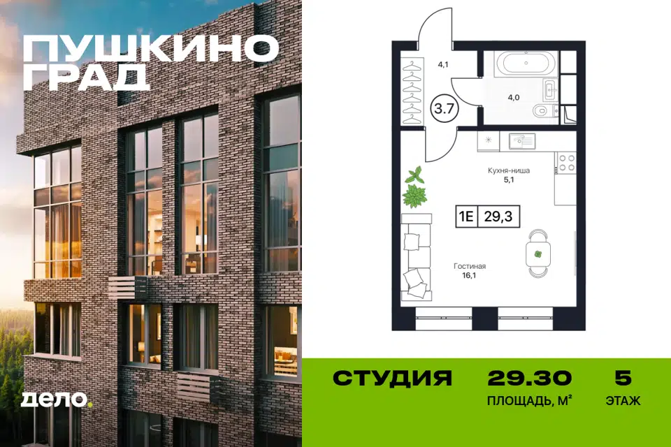 Студия, 29.3 м², 4/17 этаж