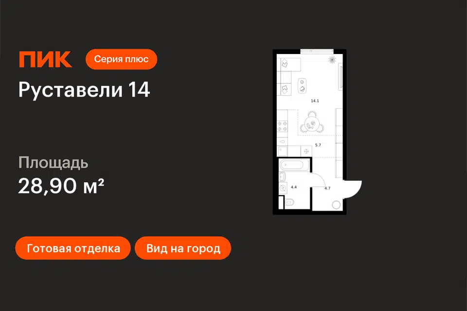 Студия, от 28.2 м², 4-12 этажи
