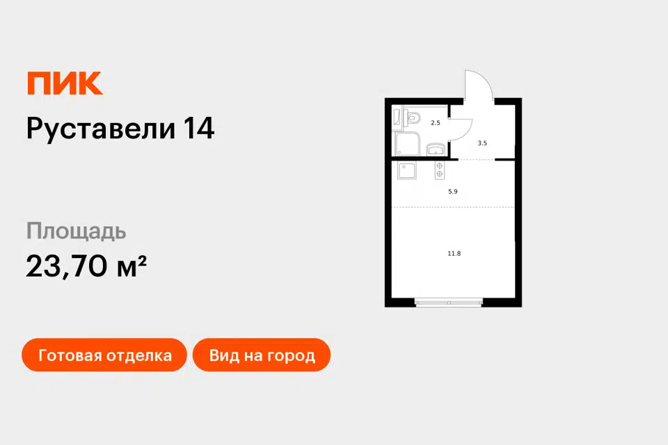 Студия, 23.6 м², 28/33 этаж