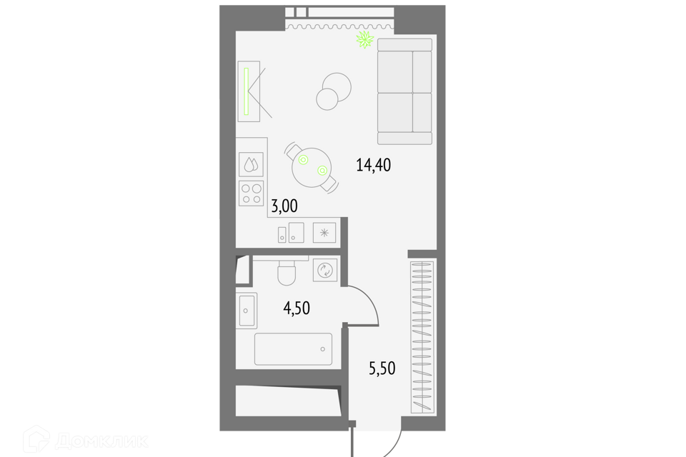 Студия, от 22.99 м², 3-46 этажи