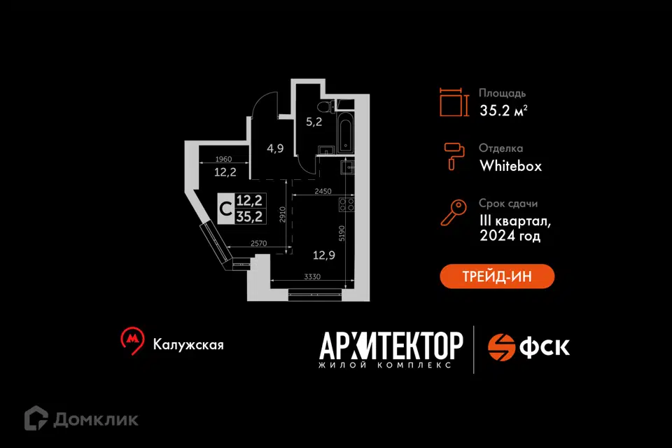 Студия, 35.2 м², 27/47 этаж