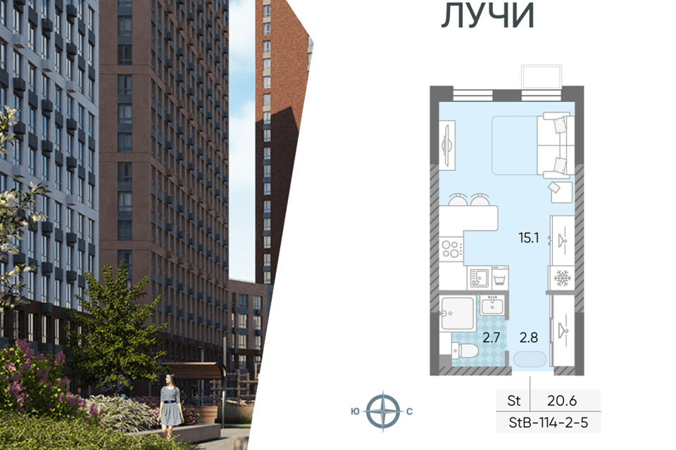 Студия, от 20.2 м², 2-20 этажи