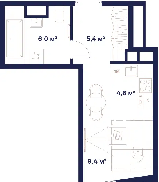 Студия, от 20.8 м², 3-9 этажи