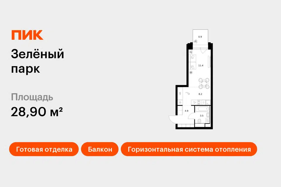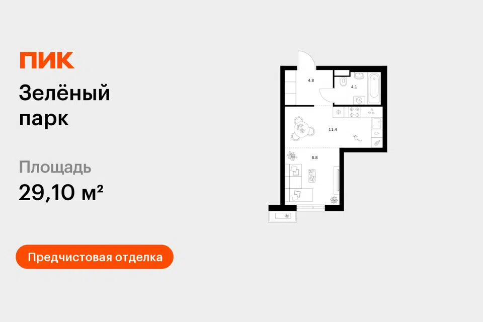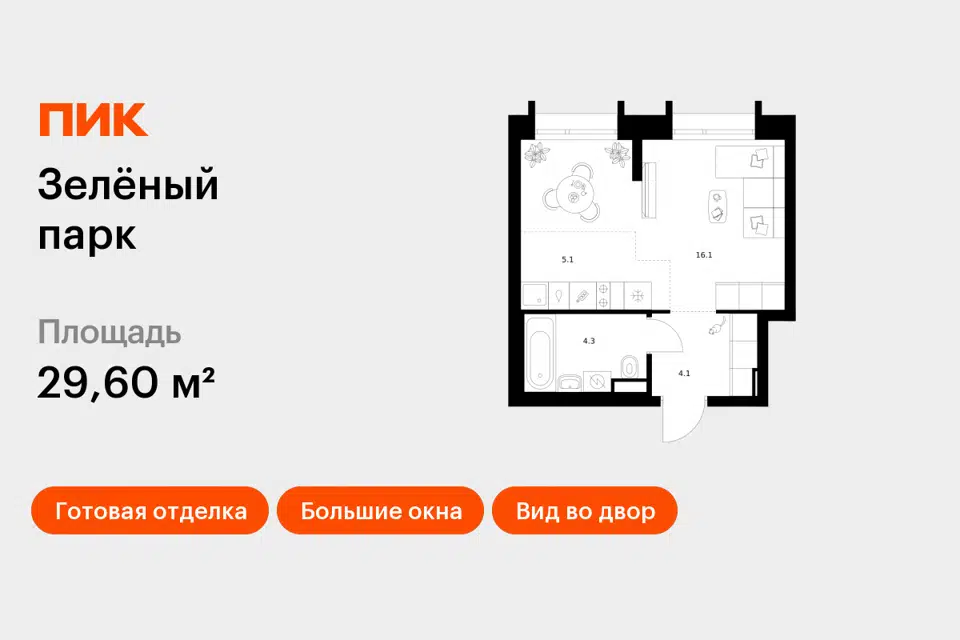 Студия, 30.5 м², 11/17 этаж