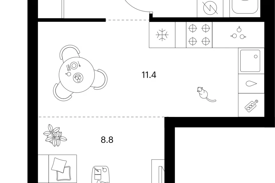 Студия, 21.9 м², 4/7 этаж