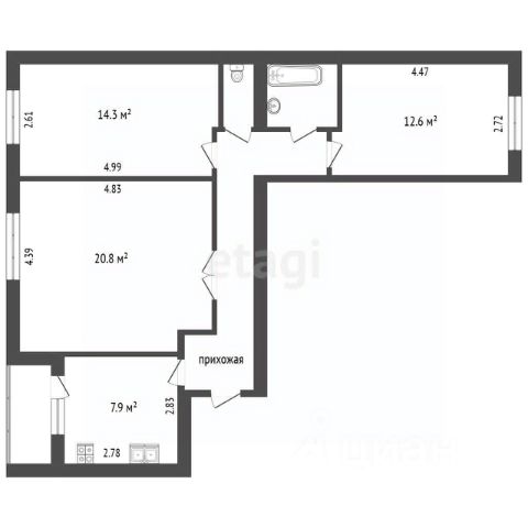 3-комн. кв., 69.2 м², 3/3 этаж