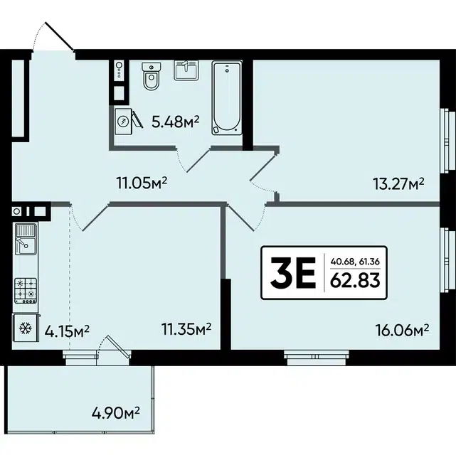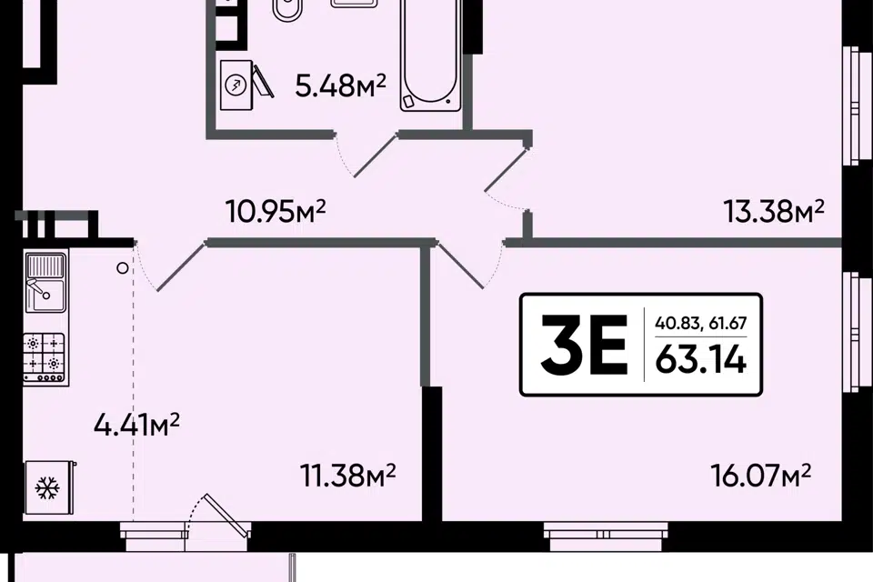 3-комн. кв., 68.8 м², 16/17 этаж