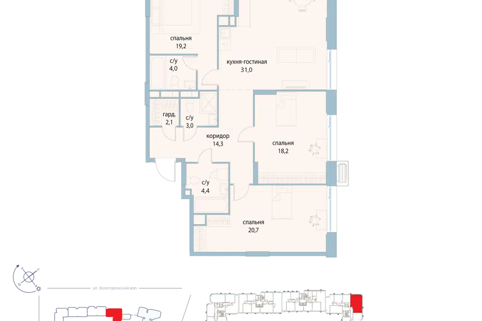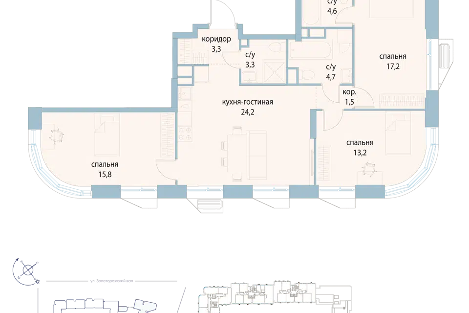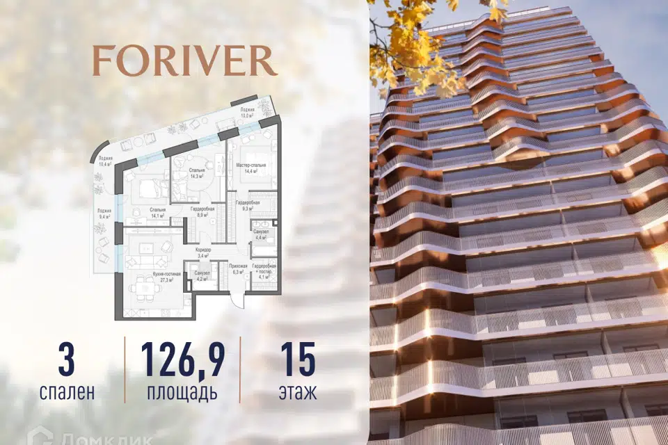 3-комн. кв., 126.9 м², 15/19 этаж