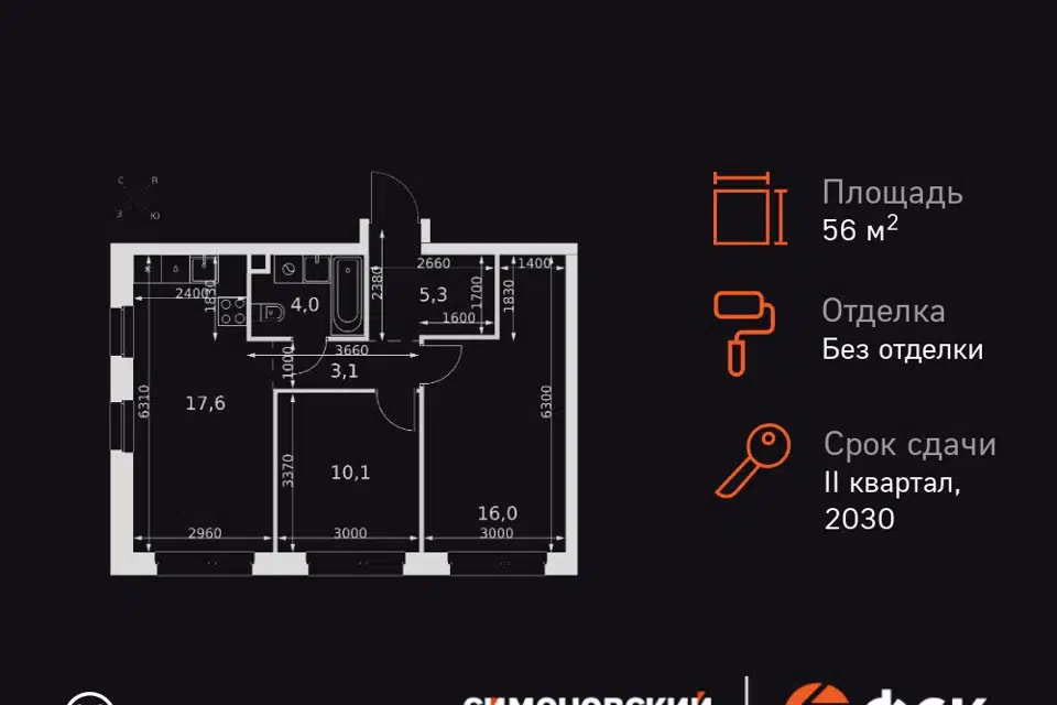 3-комн. кв., 56.1 м², 18/27 этаж