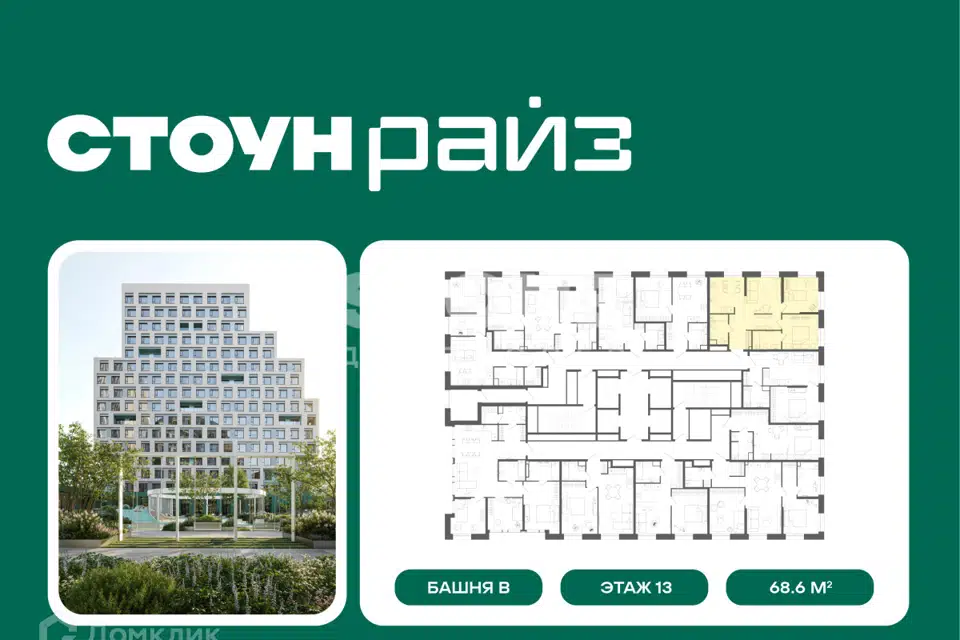 3-комн. кв., 68.6 м², 13/28 этаж