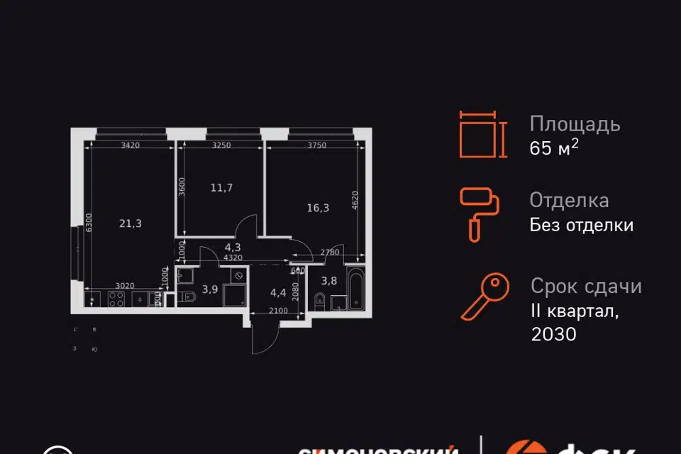 3-комн. кв., 65.7 м², 6/27 этаж