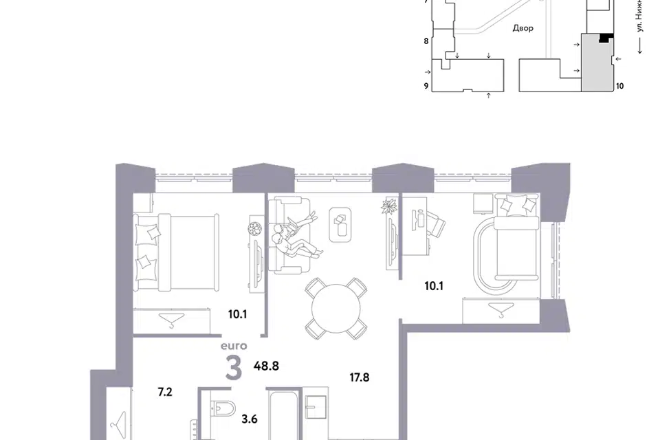 3-комн. кв., 48.8 м², 3/38 этаж