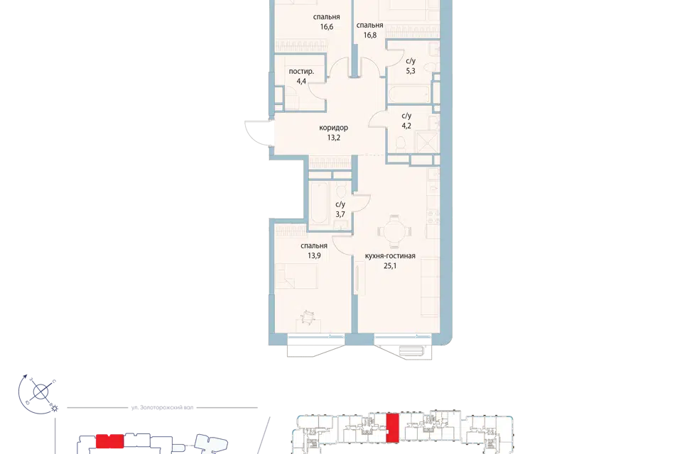 3-комн. кв., 73.8 м², 25/27 этаж