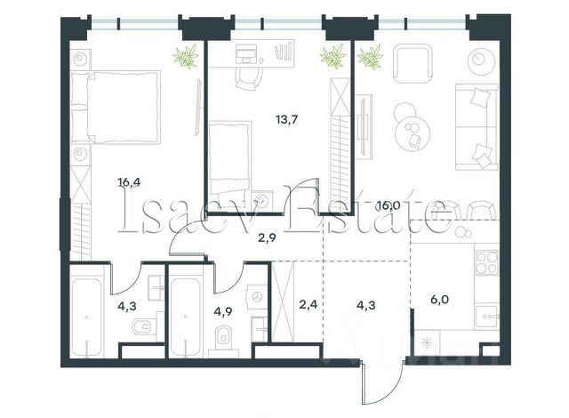 3-комн. кв., 70.8 м², 13/19 этаж