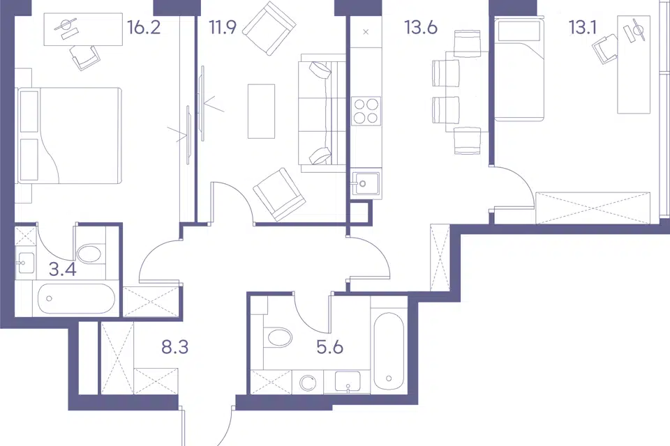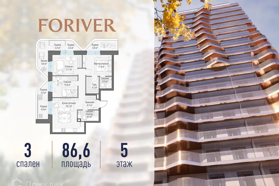 3-комн. кв., 86.6 м², 5/19 этаж
