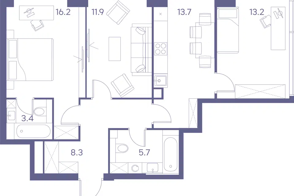 3-комн. кв., 72.1 м², 12/43 этаж