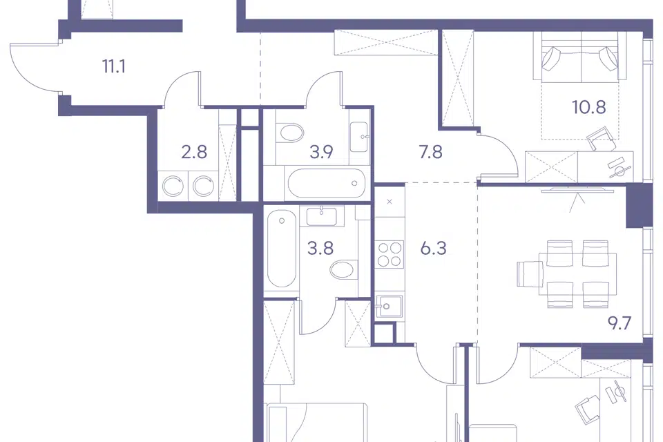 3-комн. кв., 87.7 м², 8/11 этаж
