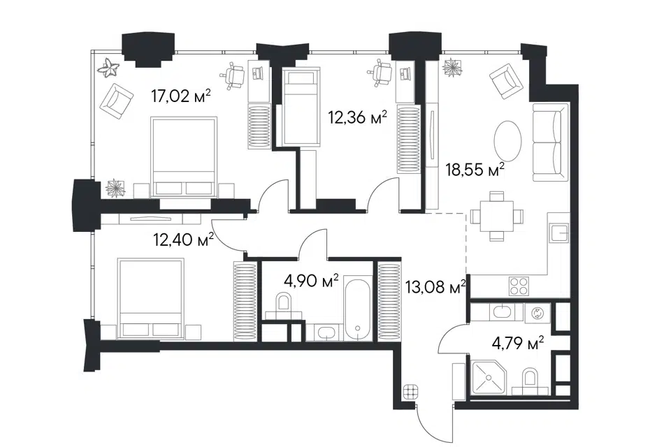 3-комн. кв., 91 м², 4/17 этаж