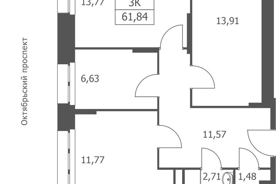 3-комн. кв., 62.9 м², 8/12 этаж