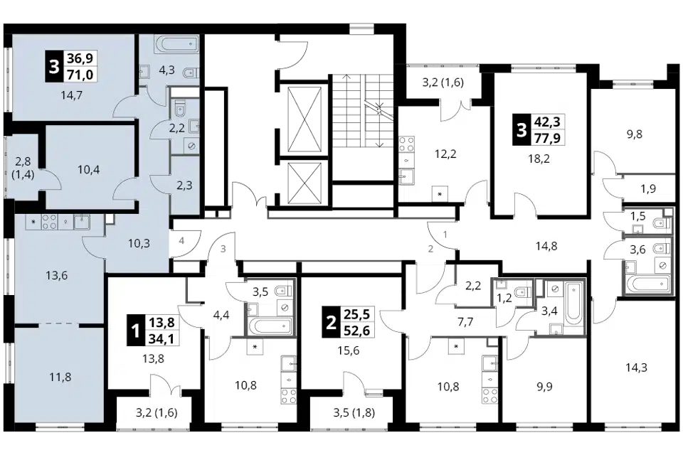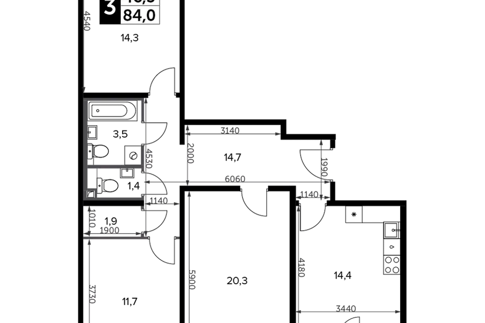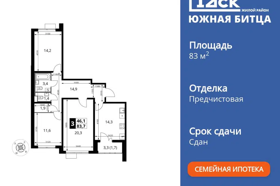 3-комн. кв., 84.1 м², 14/22 этаж