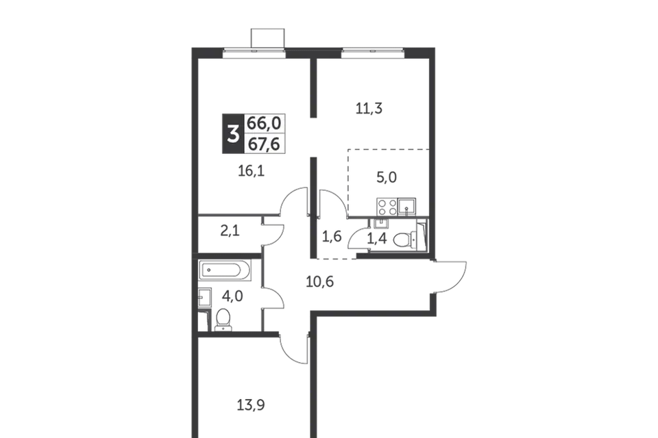 3-комн. кв., 66.9 м², 9/24 этаж