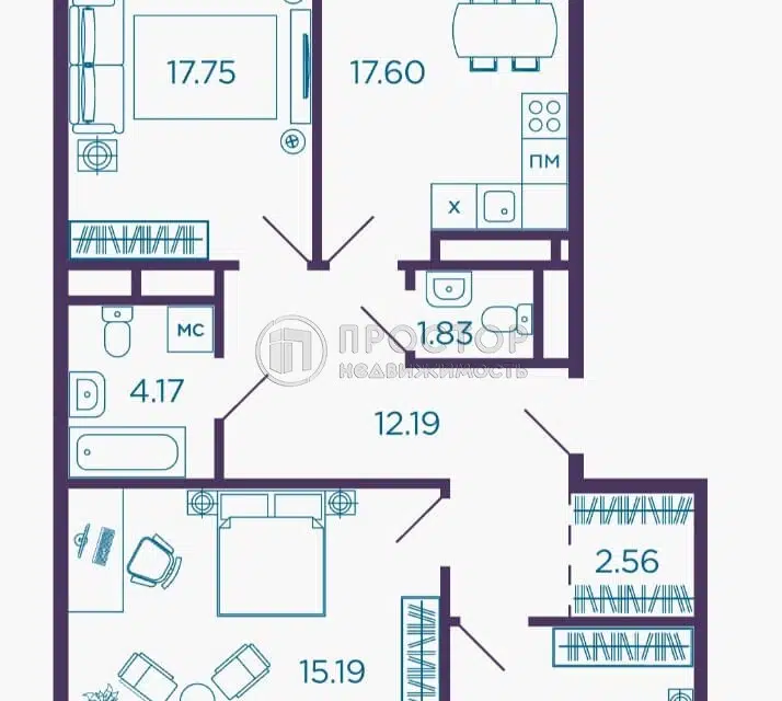 3-комн. кв., 76.5 м², 17/17 этаж