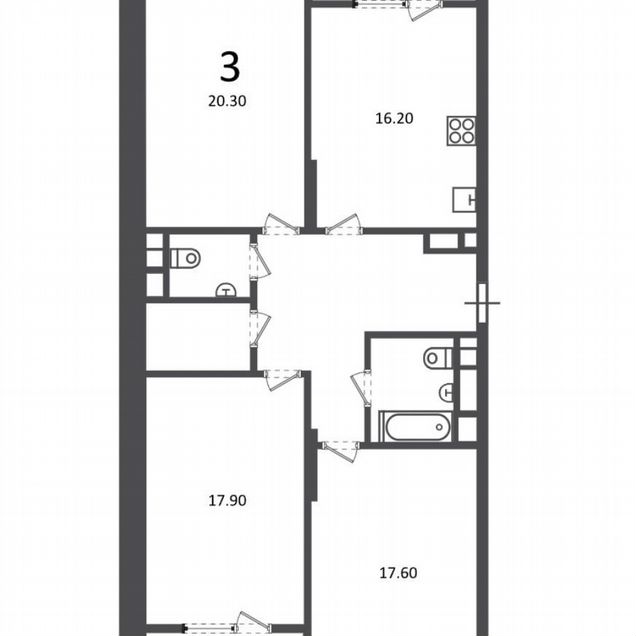 3-комн. кв., 95.3 м², 16/20 этаж