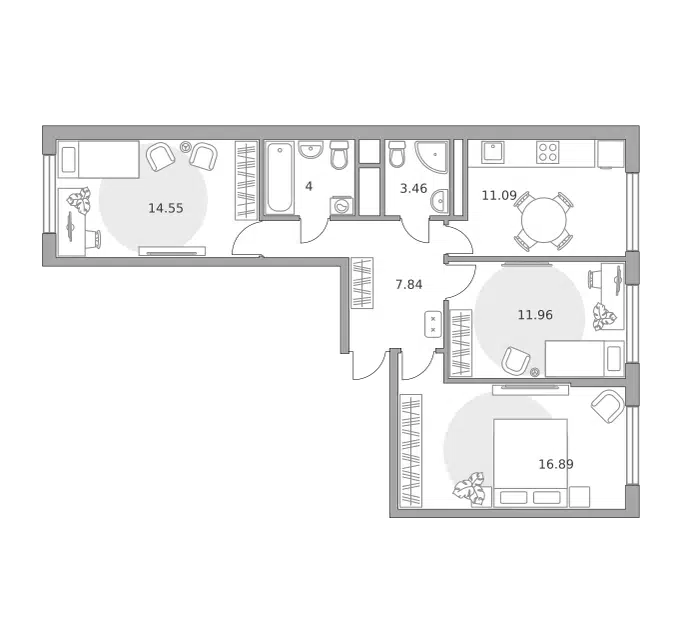 3-комн. кв., 69 м², 16/17 этаж