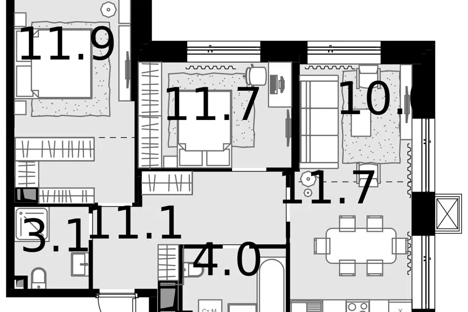 3-комн. кв., 80.5 м², 3/12 этаж