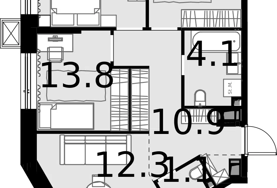 3-комн. кв., 82.3 м², 13/20 этаж