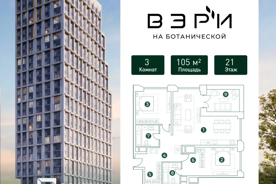 3-комн. кв., 104.3 м², 20/20 этаж