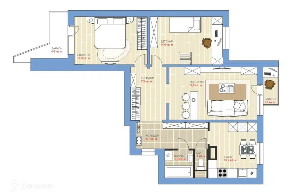3-комн. кв., 73.9 м², 9/17 этаж