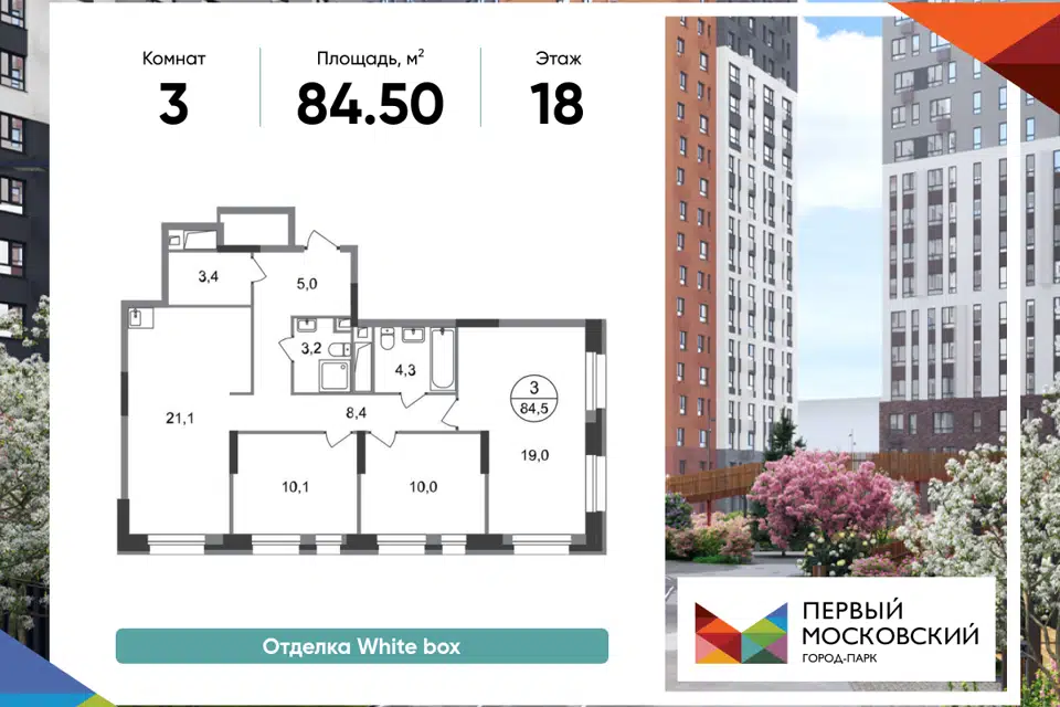 3-комн. кв., 84.5 м², 16/20 этаж