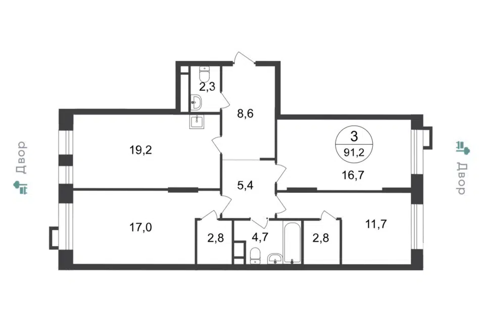 3-комн. кв., 87 м², 3/19 этаж