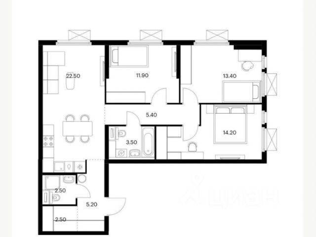3-комн. кв., 95 м², 1/14 этаж