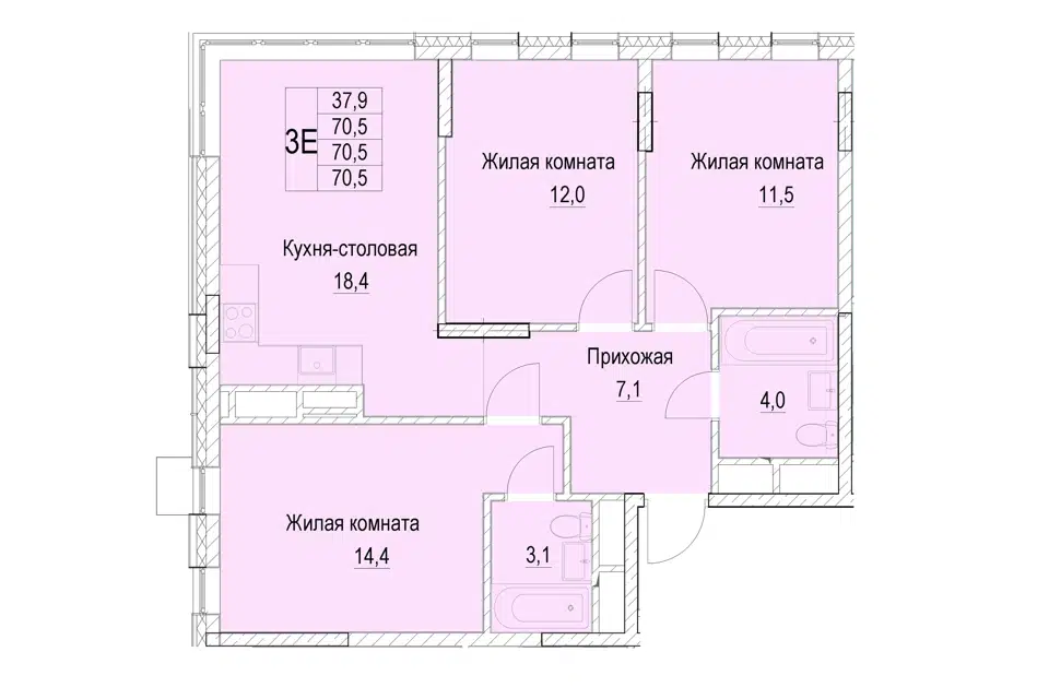 3-комн. кв., 69 м², 14/14 этаж