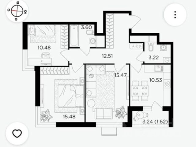 3-комн. кв., 71.1 м², 13/26 этаж