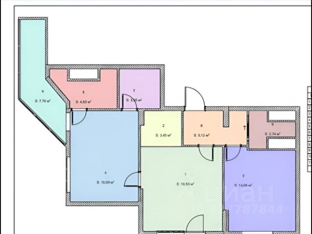 3-комн. кв., 63.1 м², 1/9 этаж