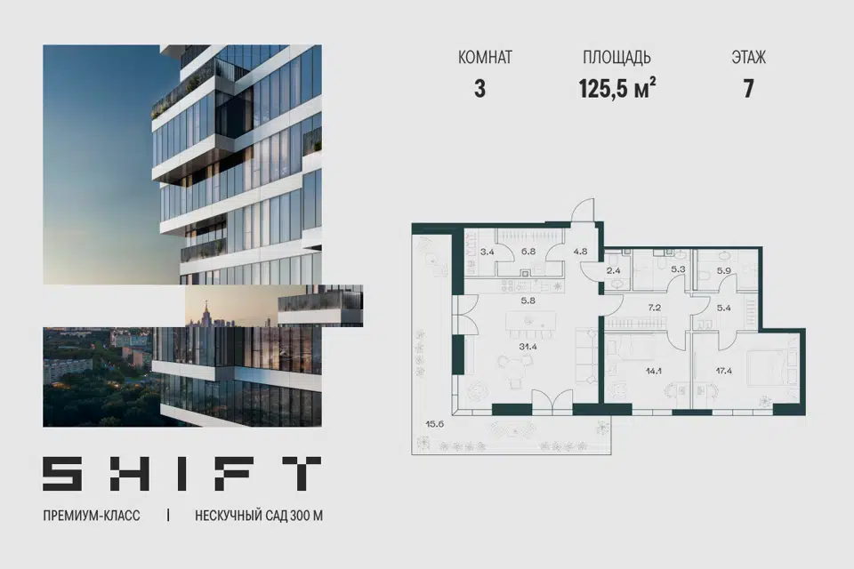 3-комн. кв., 125.5 м², 7/20 этаж
